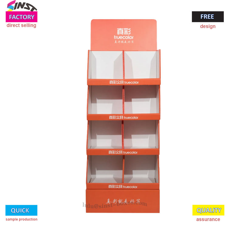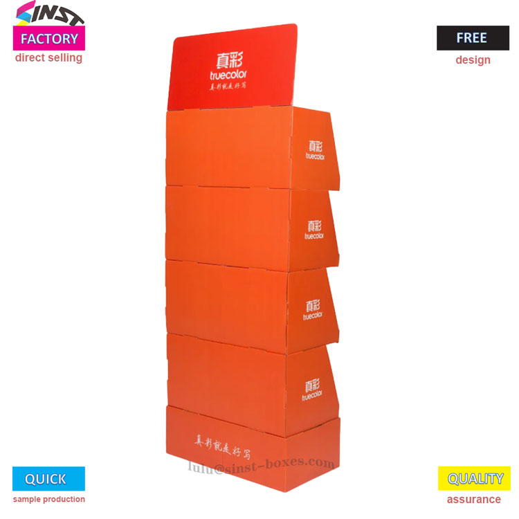 Овој живописен портокалов црвен штанд за прикажување брановидни хартија е визуелна атракција и артефакт со ефект на бренд. Секој слој од страничната и долната кутија на кутијата е постојано врежан со логото на брендот, продлабочувајќи ја меморијата на купувачот. Решетката за прикажување на брановидни кутии за хартиени крпи е направена од густа брановидна хартија материјал со силна отпорност на компресија, а исто така е многу цврст при натрупување повеќе предмети. Повеќеслојна наредена структура со независни прегради, совршено погодна за ролни со марамчиња, канцелариски материјал и лесен пристап без заглавување; Од брзорастечкиот дел за стоки за широка потрошувачка во супермаркетите до шалтерот на продавниците, го привлекува вниманието на потрошувачите со боите со висок контраст, надградувајќи ја „решетката за дисплеј“ во „засилувач на продажбата“, помагајќи ви лесно да ја зголемите изложеноста на производите,