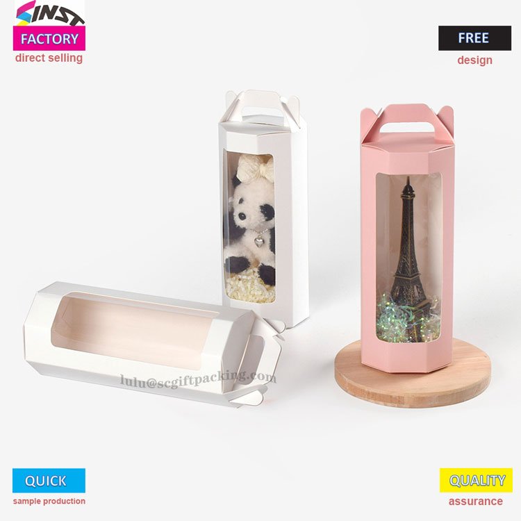Оваа луксузна кутија за подароци со светло розов прозорец е совршена за држење кукли и цвеќиња. Трендот на испраќање цвеќиња во шармантните кутии ги воодушеви и давателите и примателите, додавајќи допир на софистицираност на традиционалните цветни аранжмани. Цветни прозорец кутии доаѓаат во најразлични форми, големини и дизајни, мешајќи цвеќиња со исклучителната кутија за подароци. За разлика од типичното затвореноКутија за подароци за прозорец со цвеќиња, овие карактеризираат транспарентен прозорец вграден во предниот дел, покривајќи две третини од површината на кутијата. Преку целофан, може да се видат контури на цвеќињата во рамките на цвеќињата - ова е „кутијата за подароци за цвеќиња“ што тивко стана популарна оваа есен и зима.