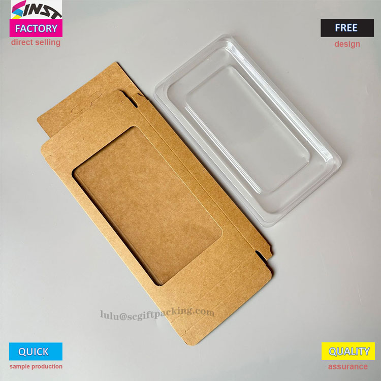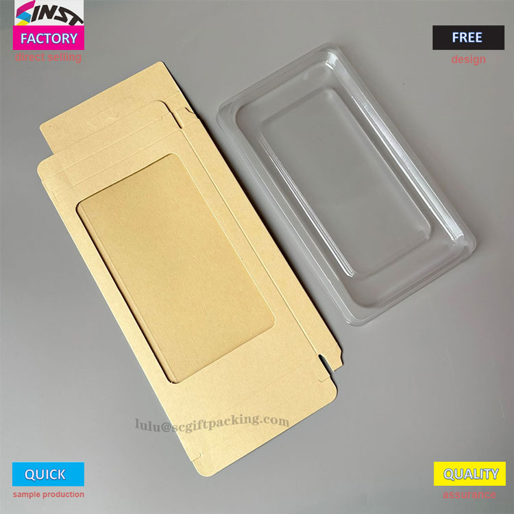 Оваа кутија за пакување на телефонски кутии има дизајн „транспарентен прозорец+повеќе опции за боја“ - кафеави, бели и црни кутии за пакување, сите доаѓаат со транспарентни прозорци, овозможувајќи ви да ги видите обрасците на цртани филмови внатре без да ја отворите кутијата. Кутијата за пакување има висечки дупки и може да се испорачува рамно без оштетување на притисокот. Тоа е привлечно кога се става на полиците, орманите и прозорците. Тоа е и телефонски случај и „декоративна ставка“, комбинирајќи практичност и естетика.
