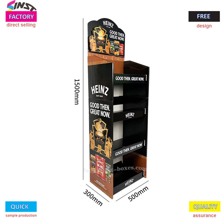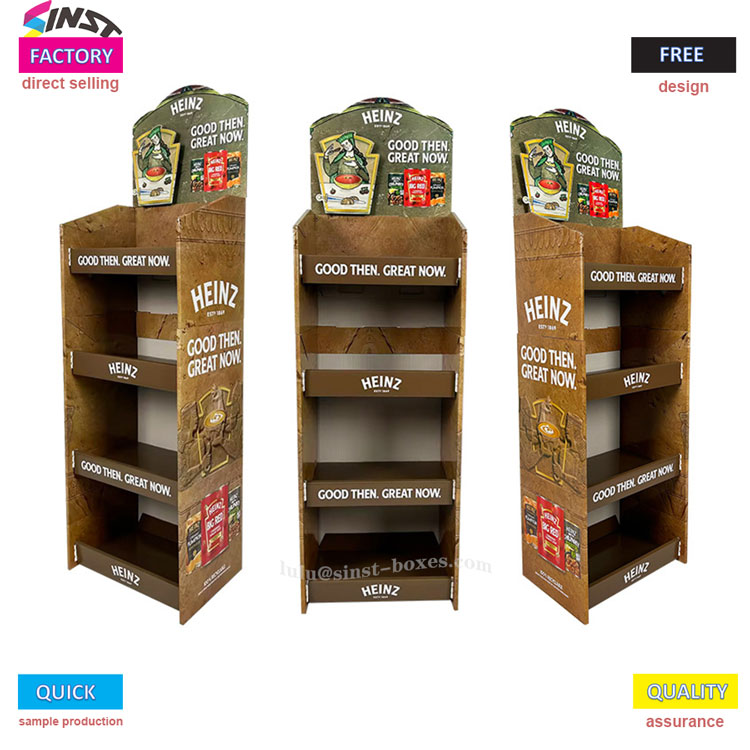 Картонскиот држач за сос од домати е центриран околу „силна изложеност на бренд + практичен приказ“, специјално дизајниран за сос од домати и погоден за сцени на мало, како што се супермаркети и продавници. Стандардот за приказ на сос од домати обезбедува четири слоја простор за складирање за слоевито поставување на различни спецификации на сос од домати. Од стандардни шишиња до мали пробни производи за пакување, тие можат да се „постават во нивните соодветни позиции“ непречено и без заглавување.