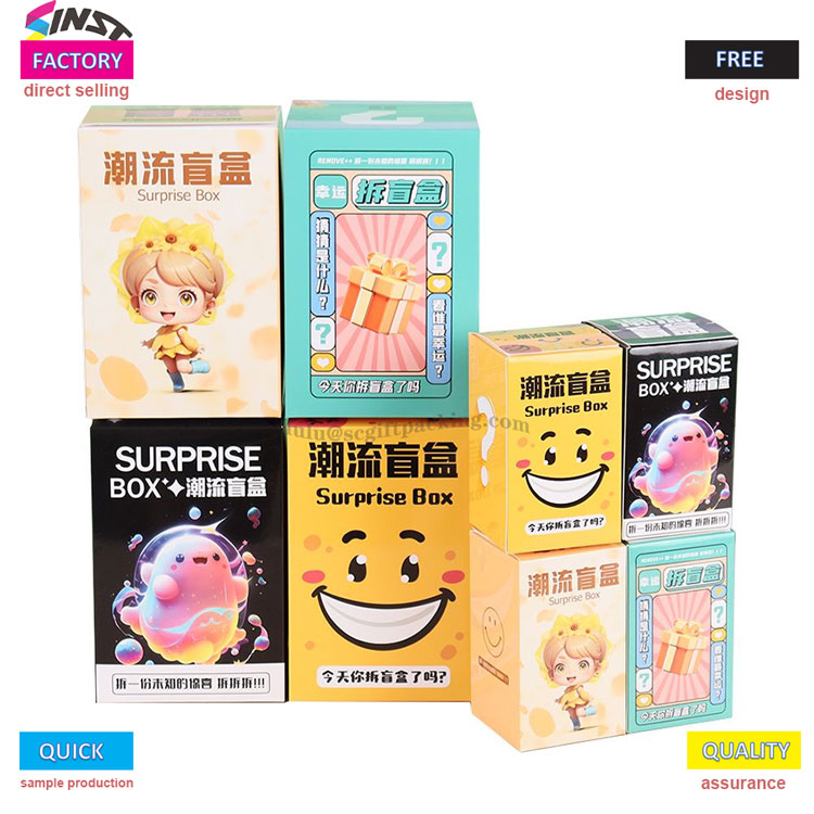 Големината Fortrendy Doll Blind Box солза картичка може да се прилагоди според потребите на клиентите. Во моментов, големините на кутијата се: 6 * 6 * 10см; 10 * 10 * 15см; Оваа кутија може да користи печатење со висока дефиниција и увезено мастило,
